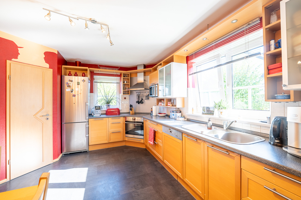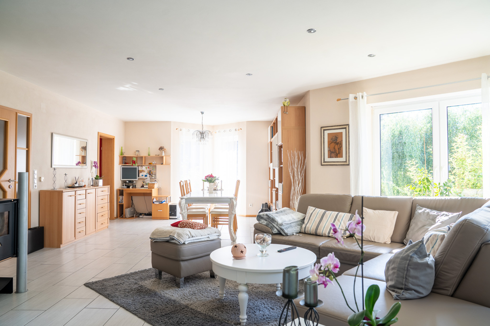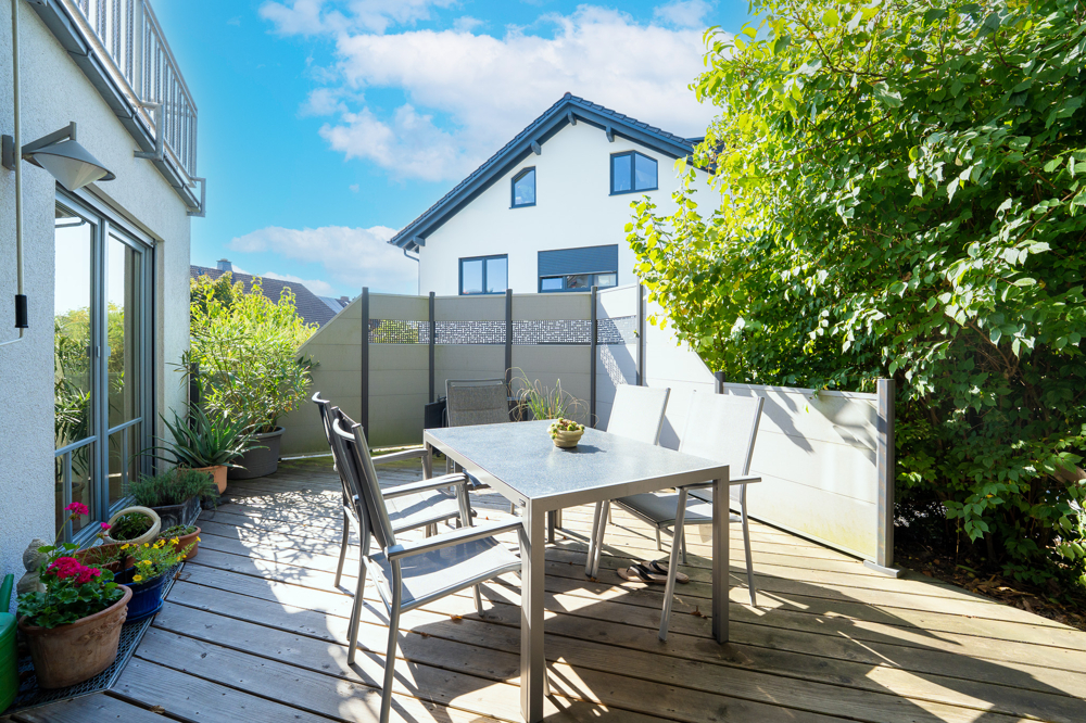 Die Kombination aus klarer Architektur, wertiger Ausstattung und liebevoll gestalteten Außenbereich schafft ein stimmiges Gesamtbild mit hohem Wohnwert.