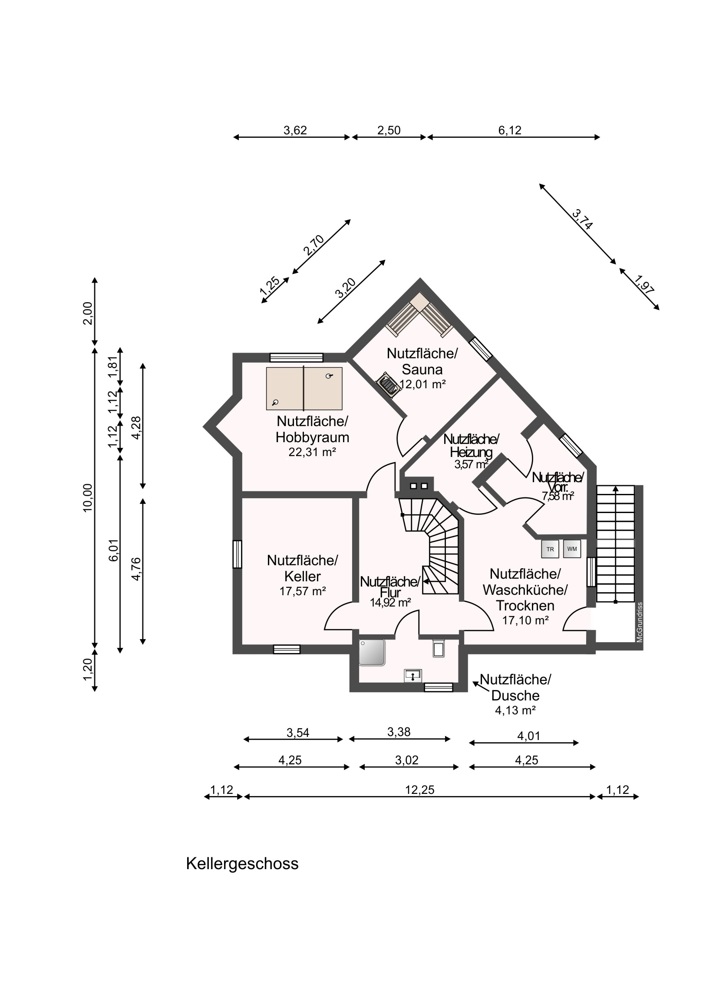Auch das Kellergeschoss weiß zu begeistern: Neben den klassischen Keller- und Hauswirtschaftsräumen befindet sich hier ein Hobbyraum, ein Gästezimmer sowie eine Sauna und ein Duschbad – perfekt für entspannte Stunden zuhause. Die flexible Nutzung dieser Etage eröffnet zahlreiche Möglichkeiten für Familie, Arbeit und Freizeit.