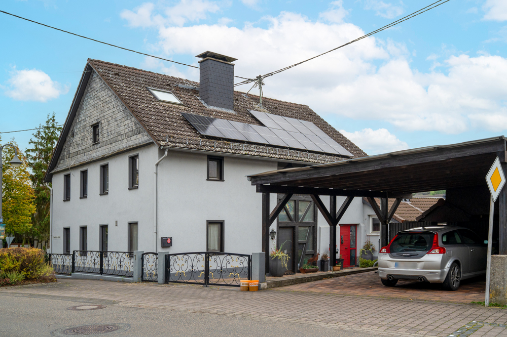 Zum Haus gehört außerdem ein Nebengebäude mit kleiner Werkstatt, Motorrad-Garage und Abstellraum. Ein Carport für zwei Fahrzeuge ergänzt das Ensemble.