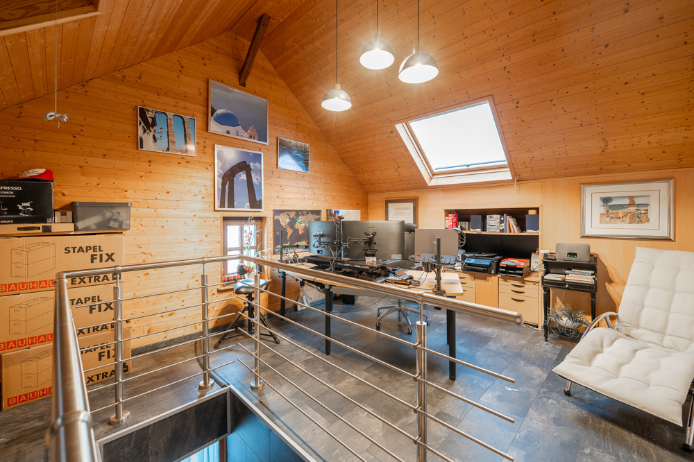 Die umfassende Sanierung erfolgte vor einigen Jahren mit höchstem Anspruch an Material, Funktion und Design. Entstanden ist ein Zuhause, das Modernität mit Behaglichkeit verbindet – edel, aber nicht kühl; außergewöhnlich, aber immer wohnlich. Besonders eindrucksvoll zeigt sich das im Eingangsbereich, der mit seiner offenen Empore und der exklusiven Gestaltung ein einzigartiges Raumgefühl schafft.