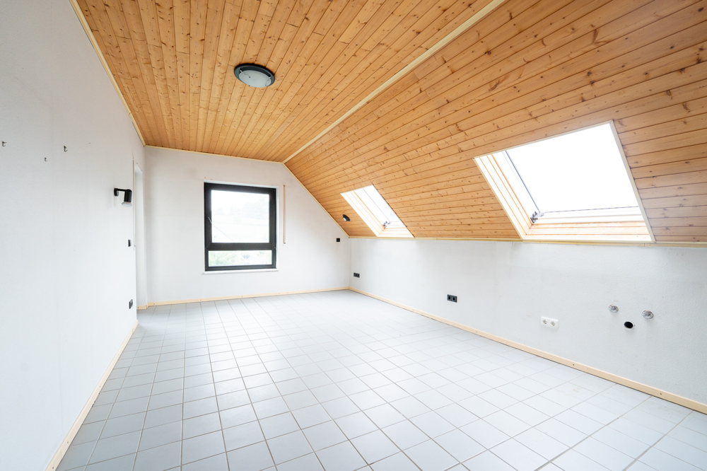 Gut zu wissen: Hier besteht die Möglichkeit, bei Bedarf zwei Wohneinheiten zu schaffen. Dank bereits vorhandener Küchenanschlüsse im Dachgeschoss lässt sich dieses Vorhaben unkompliziert realisieren – ideal für Mehrgenerationenwohnen oder Vermietung.