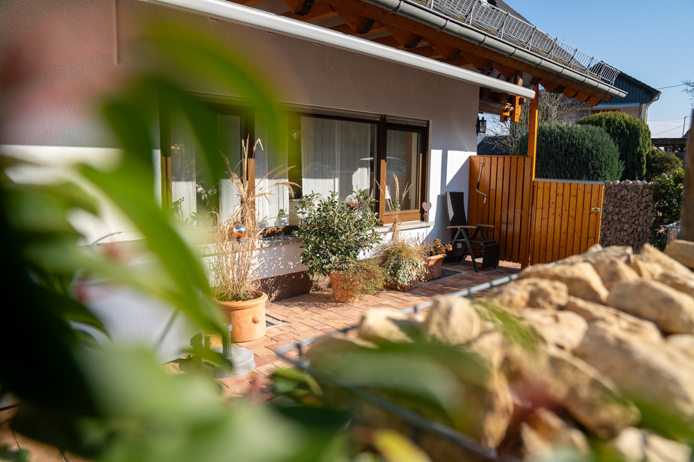 Das Grundstück ist kompakt und pflegeleicht –perfekt zum Entspannen und für gesellige Stunden. Ein geschützter Rückzugsort mit schön angelegtem Freisitz, wettergeschützt durch die Markise.