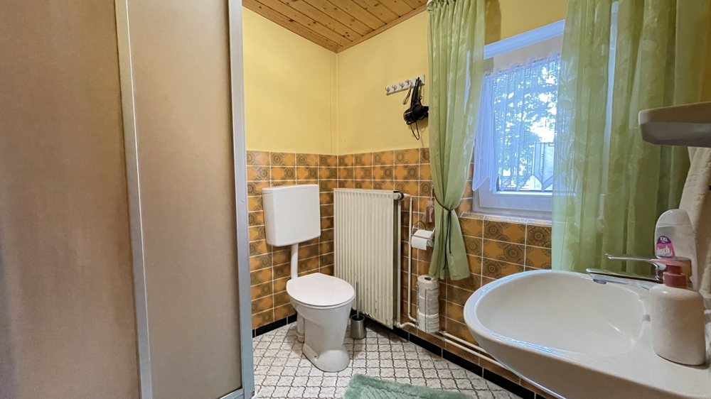 Das Haupthaus erstreckt sich über zwei Etagen, aktuell mit zwei separaten Wohnungen, kann aber perfekt als Einfamilienhaus genutzt werden.